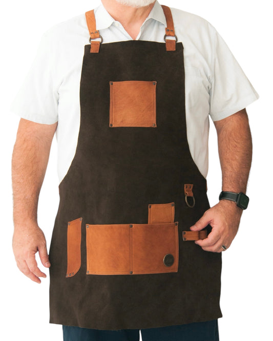 Sold outLEATHER APRON WITH POCKETS IN BROWN